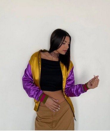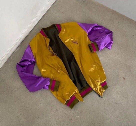BOMBER confeccionada en satén importado, forrada y con cierre reforzado, bordado con la marca